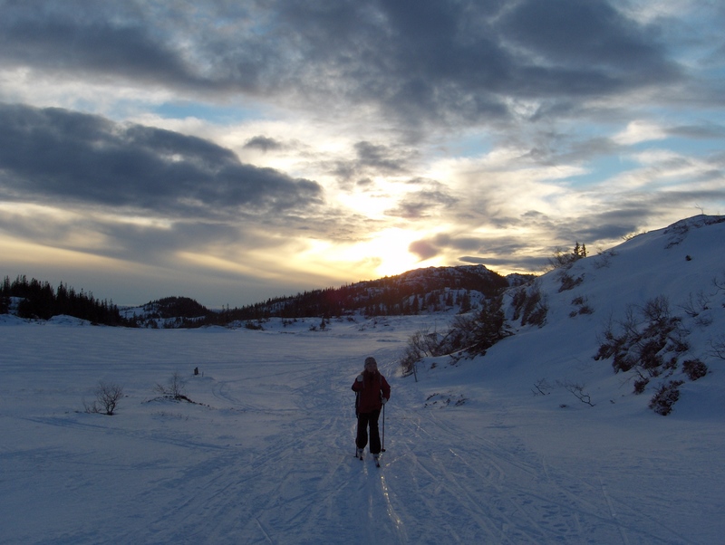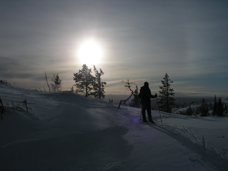 Najkrótszy dzień roku przypada na półkuli północnej w dniach 21-22 grudnia. Trondheim jest położone na 63°26’N, więc szczęśliwie leży o całe 3° na południe od koła podbiegunowego północnego (66°33’39″N). Na szczescie nie ma zjawiska braku slońca i ciemnych dni, charakterystycznych dla Norwegii północnej i miast: Bodø, Tromsø, Atla, Hamerfest i innych. Grudniowy dzień jest jednak tutaj dosyć krótki, ponieważ słońce „wstaje” ok. 10-tej a zachodzi ok. 14.30, wiec najkótszy dzień trwa ok. 4,5 godz. Nie jest więc tak źle, chociaż idąc do pracy i z niej wracając jest kompletnie ciemno i brak naturalnego światla jest troche dla nas uciążliwe. Niektórym to wcale nie przeszkadza, ale my staramy się w kazdy dzien wolny od pracy spędzac na powietrzu zwłaszcza w godzinach słonecznych. Wycieczki w góry na nartach to także okazja aby „złapać” troche promieni niewysoko wschodzącego słońca. Chodząc po wniesieniach zawsze można nieco przedłużyć sobie ten cenny „czas słoneczny”…
