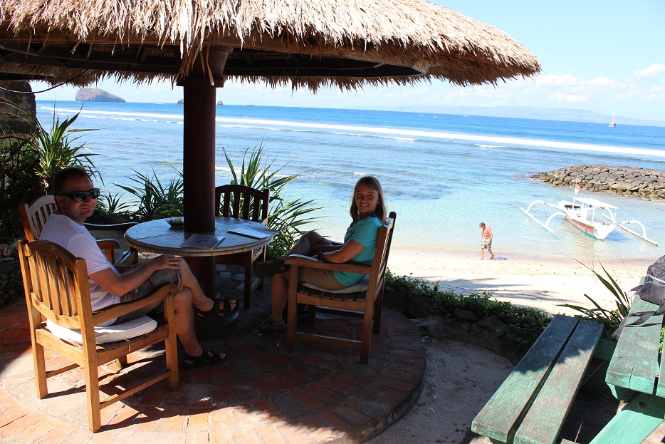 Temperatura powietrza 26-28C (wiec perfekcyjna dla nas) Woda również ciepła ok. 24C i ma przejrzystość ok. 30m, a podwodny świat jest bardzo interesujący, ale o tym oraz wiecej o przygodach na Bali napiszemy już wkrótce… 🙂