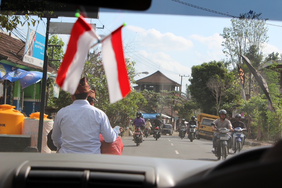Na Bali wszystko jest odwrotnie niż w Polsce: lewostronny ruch i odwrócona polska flaga narodowa… 🙂