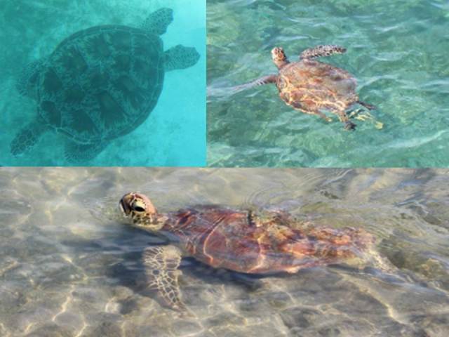 Później tych żółwi widzimy po kolei dobrych kilkadziesiąt sztuk. Płyną sobie tuz przy brzegu zaraz po przypływie. Możemy wiec dokładnie podziwiać te egzotyczne zwierzęta jak płyną tuż pod powierzchnią wody by, co jakiś czas wynurzyć głowę i nabrać powietrza. Jednocześnie wody jest w morzu coraz więcej, co robi na nas niesamowite wrażenie. Jak piękna potrafi być ta egzotyczna przyroda! Żółwie, rafa, przypływ, tropikalne słonce, palmy i my sami na łonie natury – ponieważ przeszliśmy na rzadko odwiedzana przez turystów stronę wyspy. Uczucie niezwykłe, romantyczne i piękne! Tak jesteśmy na Rafie Koralowej w tropikach! Teraz ten żywioł nas otacza. Nigdy nie zapomnimy tego wrażenia. Trudno to dokładnie opisać (a zdjęcia oddają jedynie ułamek tego przeżycia), ale zapewniamy, ze… dla takich chwil warto podróżować!