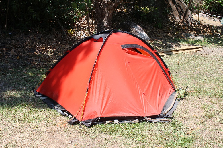 Jest bardzo egzotycznie także na wsypie. Nocujemy pod namiotem na wyznaczonym polu namiotowym. Jednak nie jest ono dobrze ogrodzone i co jakiś czas przez środek przechadzają się egotyczne „zwierzątka”. Tu poznajemy „drugie dno” tropików. Trzeba być jednak ciągle czujnym, bo ukąszenie większego gada mogłoby być dosyć groźne dla zdrowia. Obwarowujemy kamieniami namiot na noc by moc w miarę spokojnie spać i udaje się wyrwać nawet cale 7 godzin snu.