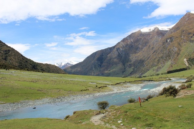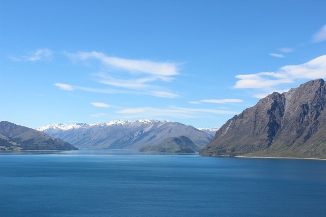 Mount Aspiring jest dość trudnym parkiem i wiele szlaków wymaga przygotowania alpinistycznego. Dzięki temu jest tu niewielu turystów. Niezdobyte szczyty pokryte grubą warstwą śniegu na tle niebieskiego nieba wyglądają tak pięknie, ze zatrzymujemy się na dłuższą chwile i podziwiamy w milczeniu. Warto było tu przyjechać…